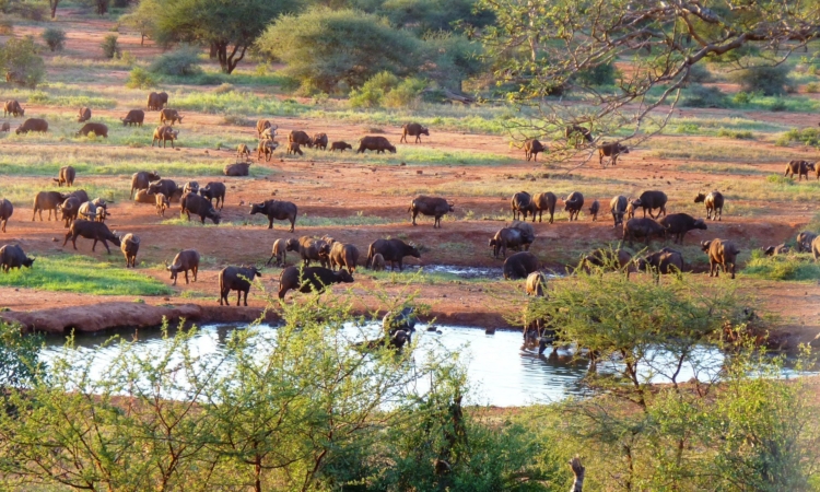 Tsavo East National Park covers over 13,700 square kilometers of land, making it a vast protected area, about nine times larger than the Masai Mara National Reserve, the famous destination for witnessing the wildebeest migration. Tsavo East is a unique destination with beautiful scenery and exceptional attractions such as the Mudanda Rock and the Yatta Plateau, the longest lava flow on Earth.